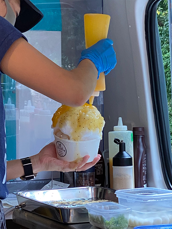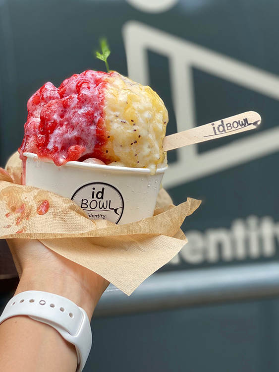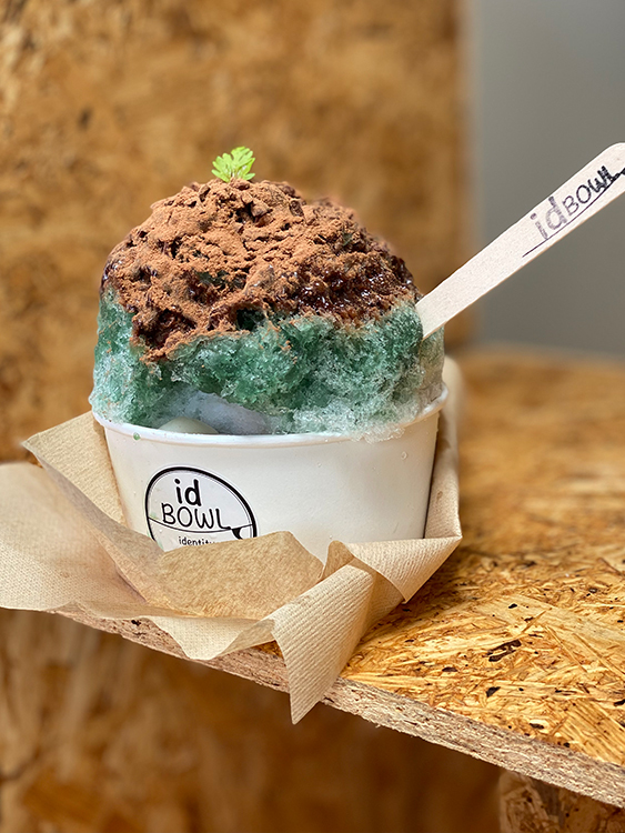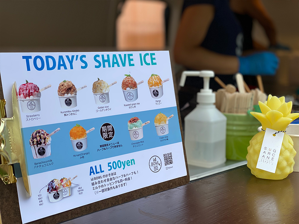 id BOWL のかき氷はどのシロップでも組み合わせ自由なハーフ&ハーフにしてもらえるので、いろいろ味わいたい人はこれがおすすめ。※シロップのハーフ&ハーフでも同一料金(500yen)です。※一部対象外もあります。